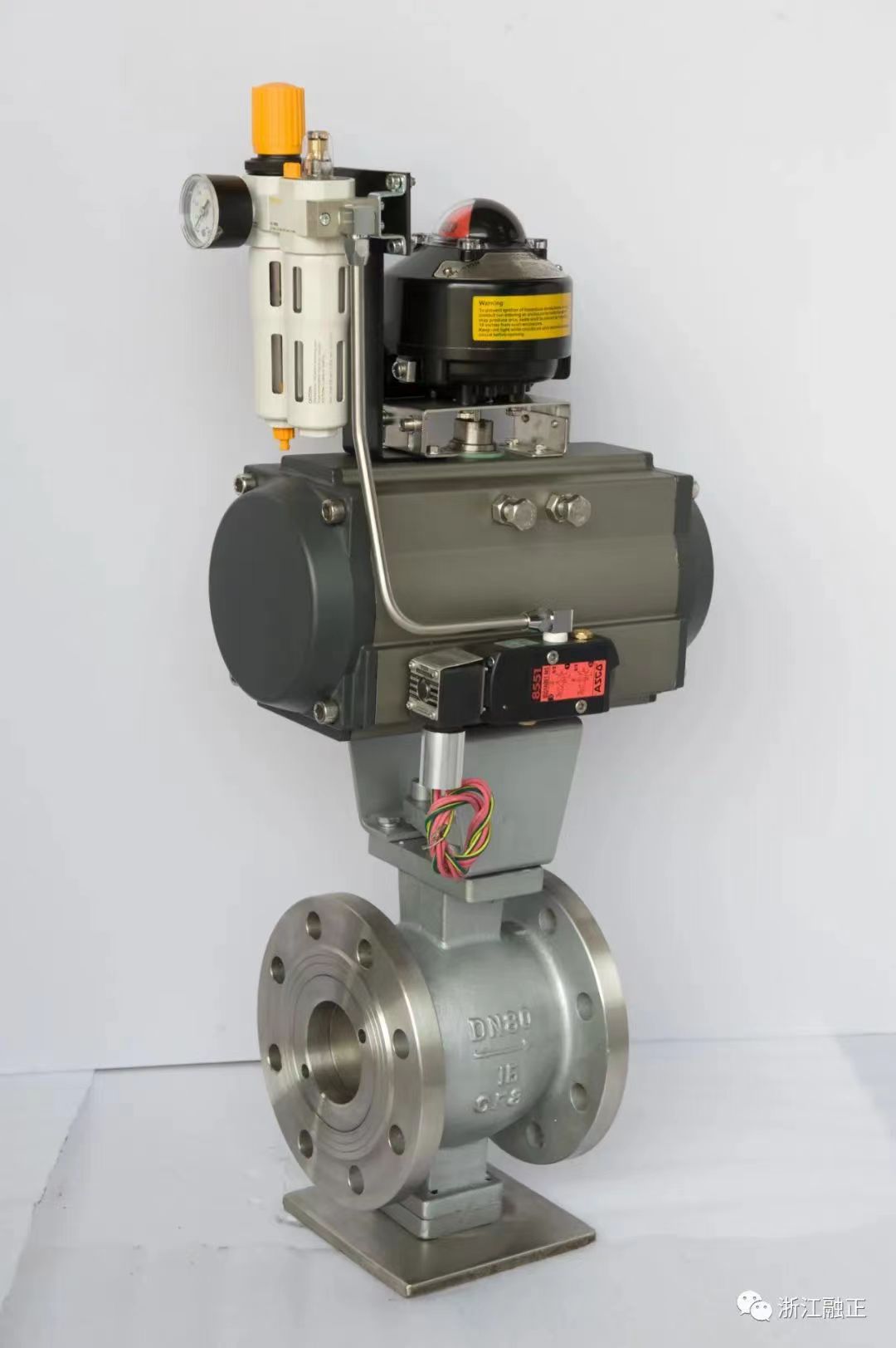 气动V型调节球阀以压缩空气为动力源。接受控制系统来的4—20mA DC(0—10mA DC)讯号,通过电气转换或电—气阀门定位器将电信号转化成阀门动作所需要的气信号,对调节球阀进行调节。